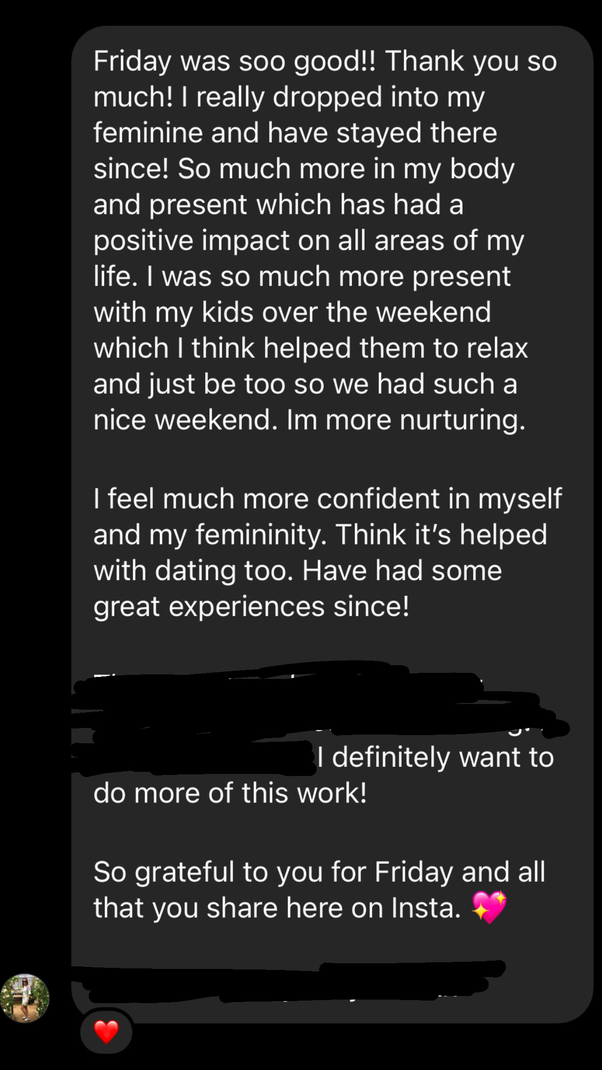 Inside this space, you learn to feel safe in your emotions, safe in your body, and safe with men - instead of bracing, performing, or managing the moment.